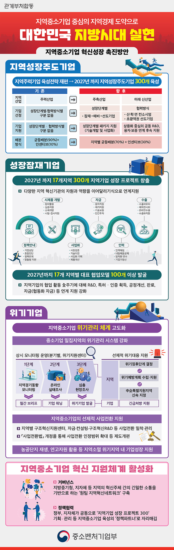 [일간환경연합 한선미 기자]정부와 지방자치단체가 협력해 오는 2027년까지 지역경제의 성장을 주도할 대표 중소기업 300개를 육성한다.