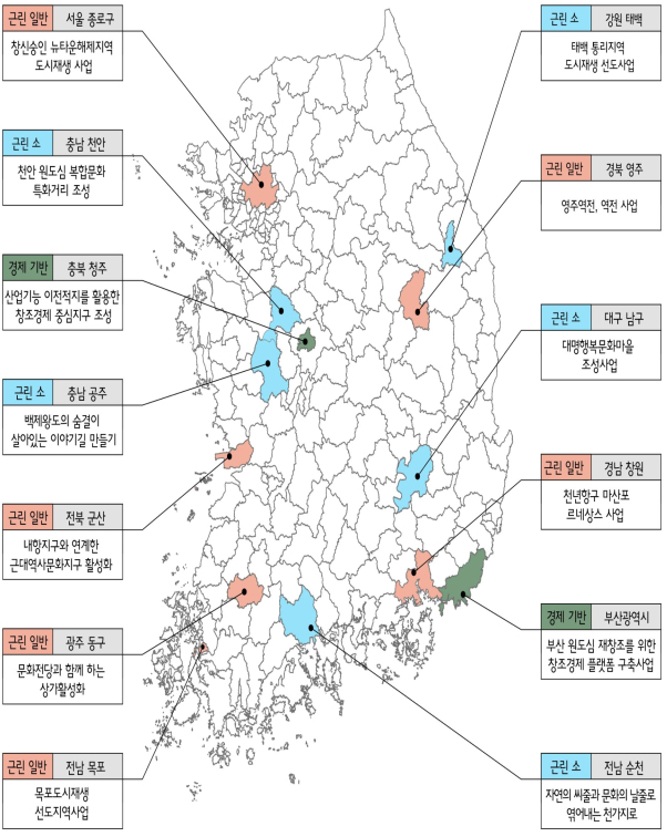 도시재생선도사업은 국정과제로 추진 중이며 도시재생이 시급하고 주변지역에 대한 파급효과가 큰 13개 지역을 선정했다.