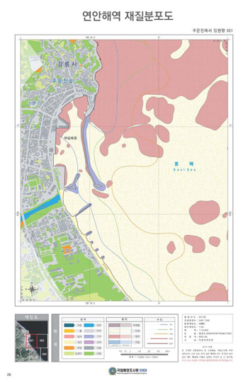 해양수산부 국립해양조사원은 24일 국내 최초로 연안해역의 해저표층 재질의 분포 형상을 수록한 ‘연안해역 재질분포도’를 제작했다고 밝혔다.