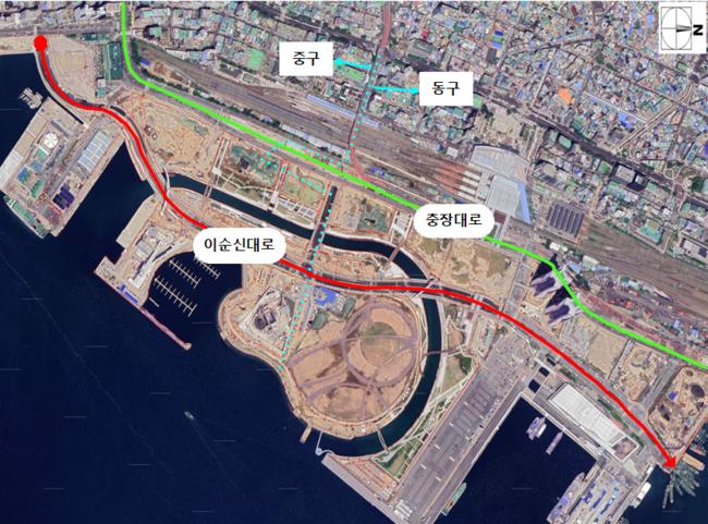 부산항 북항 1단계 재개발사업 도로 시설 준공에 따라 시에서 부여한 도로명은 ‘이순신대로’이다.