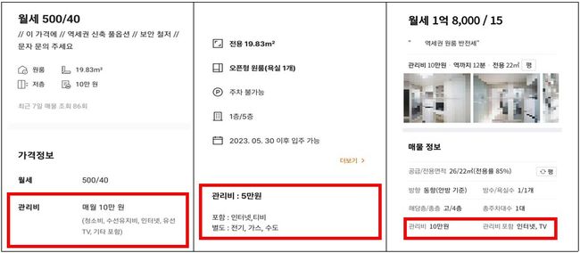 관리비 세부내역을 알 수 없는 매물사례