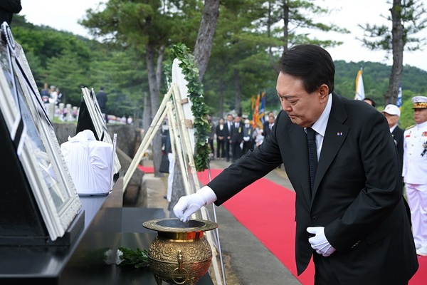 [일간환경연합 장영기 기자]윤석열 대통령은 6일 제68회 현충일 추념식에서 “우리 정부와 군은 그 어느 때보다 강력한 한미동맹을 바탕으로 철통같은 안보 태세를 구축해 국민의 생명과 안전을 지키겠다”고 말했다.