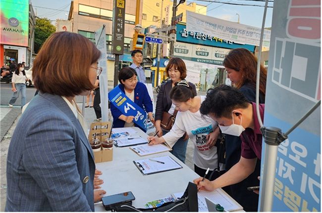 [일간환경연합 한선미 기자] 서영교 국회의원(더불어민주당 최고위원, 3선)은 중랑갑 지역위원회 당원들과 함께 지난 5월 30일부터 중랑구 곳곳에서 "후쿠시마 방사능 오염수 해양투기 저지 범국민 서명운동"을 진행하고 있다.