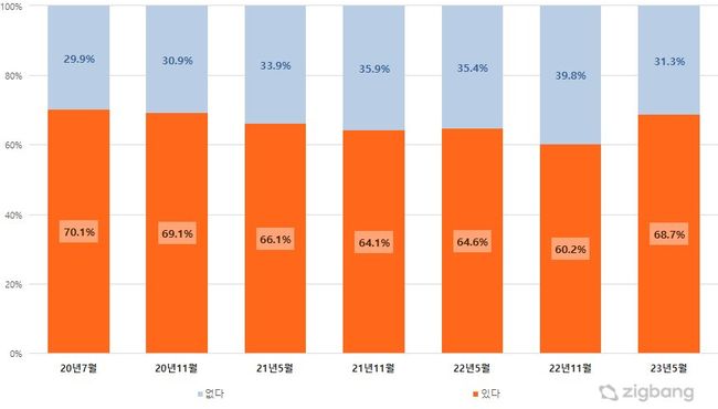 이같은 결과는 2022년 11월에 주택 매입 의사가 있다고 응답한 60.2%에 비해 8.5%p나 상승한 결과다.