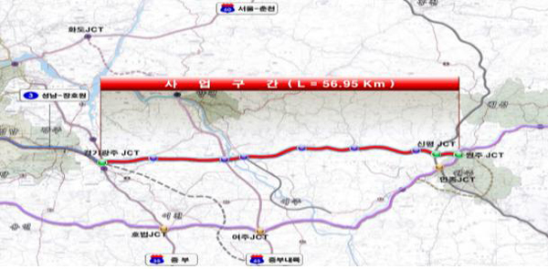 광주~원주 고속도로는 경기도 광주에서 강원도 원주를 연결하는 57km, 왕복 4차선 도로로 약 1조 6000억 원의 사업비가 투입됐다.