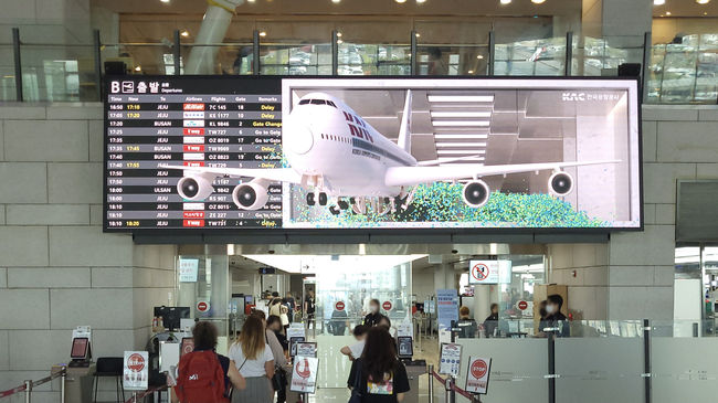 실감형 미디어아트는 아나몰픽 기법이 적용돼 영상을 바라보는 위치, 각도에 따라 달라지는 일루전 착시현상을 통해 특정 지점에서 극대화된 입체효과를 보여주는 방식으로, 항공기가 마치 영상 밖으로 튀어나올 듯이 이륙하는 장면이 펼쳐지며 항공기 탑승을 앞둔 여행객들에게 설렘과 즐거운 기다림을 선사할 것으로 기대된다.