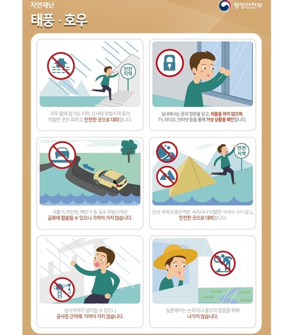 ▲ 태풍·호우 등 자연재난 발생시 행동요령(행정안전부)