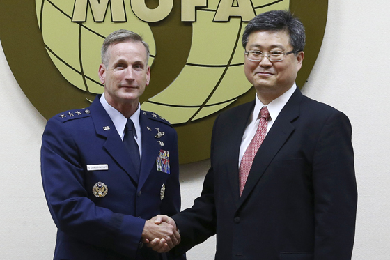 ![]() 지난해 발생한 주한미군 탄저균 샘플 배달사고 등을 논의하기 위한 한미 양국의 주한미군 주둔군 지위 협정(SOFA) 합동위원회가 지난 7월 서울 외교부 청사에서 열렸다. 회의에 앞서 한미 공동위원장인 신재현(오른쪽) 외교부 북미국장과 테런스 오샤너시 주한미군 7공군사령관이 악수하고 있다. (사진=연합뉴스 제공) |
