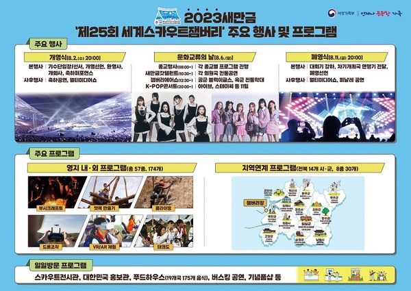 이번 새만금 세계잼버리를 준비하는 과정에서 다른 국가에서 개최된 세계잼버리와의 차별화를 위해 다양한 영내·외 프로그램(57종, 174개)을 마련했고. 잼버리 영지 인근, 14개 시군 지역과의 연계 프로그램을 처음으로 운영한다.