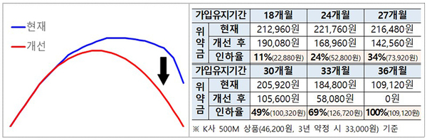 이번 개선안에 따라 향후에는 위약금이 약정기간 절반인 18개월이 지난 시점부터 감소해 만료시점인 36개월에는 0원으로 하락하는 종형 구조로 변경될 예정이다.