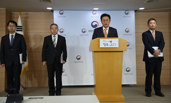환경부 이정섭 차관(오른쪽 두번째)이 29일 서울 세종로 정부서울청사에서 열린 기자회견에서 생활화학제품 안전관리 대책을 발표하고 있다.<사진=연합뉴스 제공>