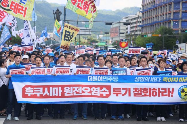 [일간환경연합 신상미 기자] 더불어민주당이 25일 일본의 후쿠시마 원전오염수 투기 중단 촉구 행진에 나섰다.