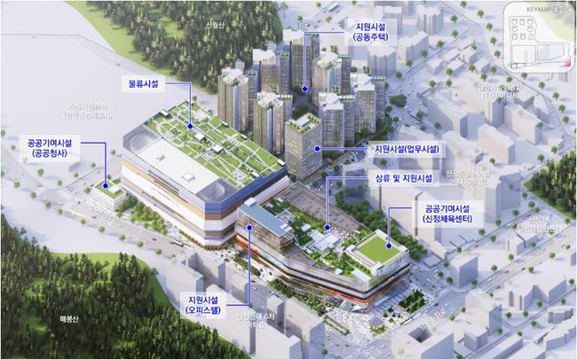 생활서비스시설로는 창업지원시설(5,421㎡), 신정체육센터(17,050㎡)를 확충하고, 주거시설로는 양질의 도심형 주택 984세대(공공임대주택 92세대 포함)를 공급해 주변지역의 활성화를 유도하여, 지역균형발전을 실현 할 계획이다.