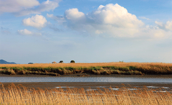 | 갈대밭이 장관을 이루는 순천만의 풍경. |