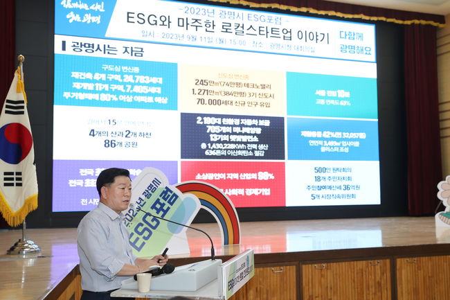 광명시는 지난 11일 시청 대회의실에서 `ESG와 마주한 로컬 스타트업 이야기`를 주제로 ESG 포럼을 개최했다