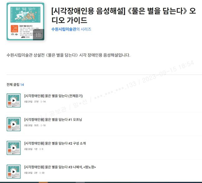 `물은 별을 담는다` 오디오 도슨트 화면.