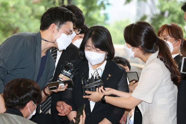 정의기억연대 후원금 유용 혐의 등으로 기소된 무소속 윤미향 의원이 지난 2021년 8월11일 오후 첫 공판이 열리는 서울서부지법 형사합의11부 법정으로 향하고 있다. (자료사진)