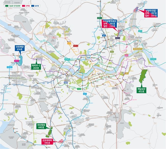 세 번째 뉴:홈 사전청약은 나눔형으로 하남교산과 서울 마곡 10-2 등에서 1,152호, 일반형으로 구리갈매역세권, 인천계양 등에서 1,225호가 공급되며, 이번 사전청약을 통해 처음으로 공급되는 선택형은 구리갈매역세권, 군포대야미, 남양주진접2에서 918호가 공급된다.