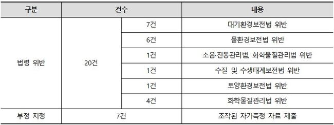 녹색기업 지정 취소 사유 (2016년~2022년) 자료=환경부