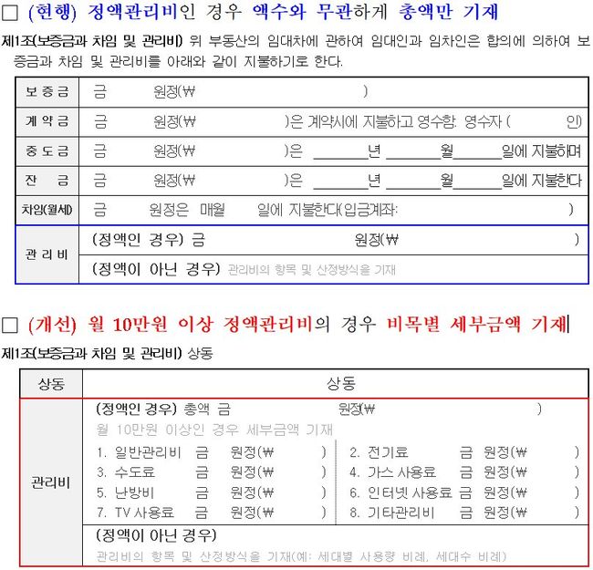 이에 법무부와 국토교통부는 전월세 매물광고시 일정금액 이상 정액관리비에 대해서는 부과내역을 세분화하여 표시하도록 하고 온라인 중개플랫폼에 표준화된 입력 기능을 마련하는 등 임대차 시장 투명화를 위해 제도개선을 추진해왔다.