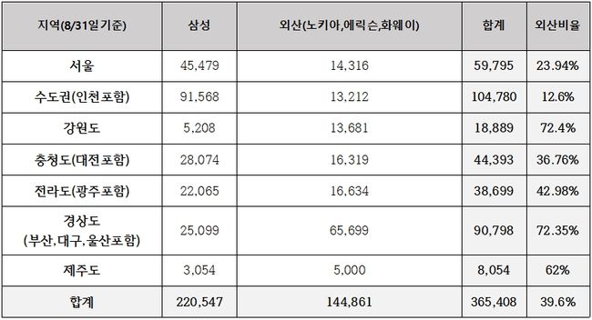 박완주 의원실이 국내 5G 기지국의 제조사별 장비를 분석한 결과 올해 8월까지 통신 3사가 전국에 총 365,408국을 설치하였으며, 노키아, 에릭슨, 화웨이 등 외산 장비를 이용한 기지국 설치는 144,861국으로 39.6%로 확인됐다. 외산 장비율이 가장 높은 통신사는 무려 60%에 가까웠다.