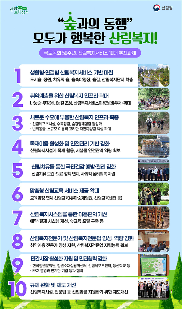 ▲ 산림복지서비스 10대 추진과제. (인포그래픽=산림청)