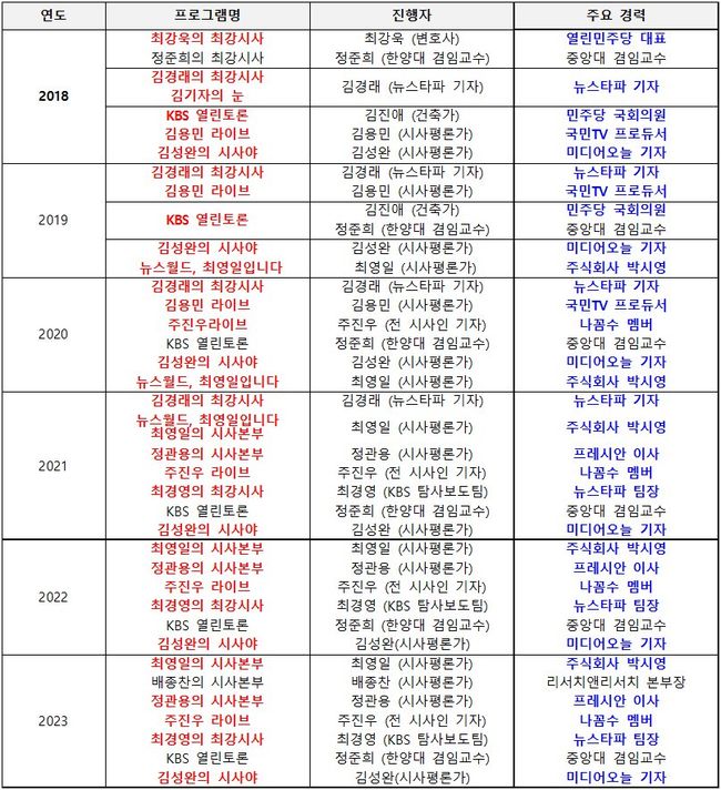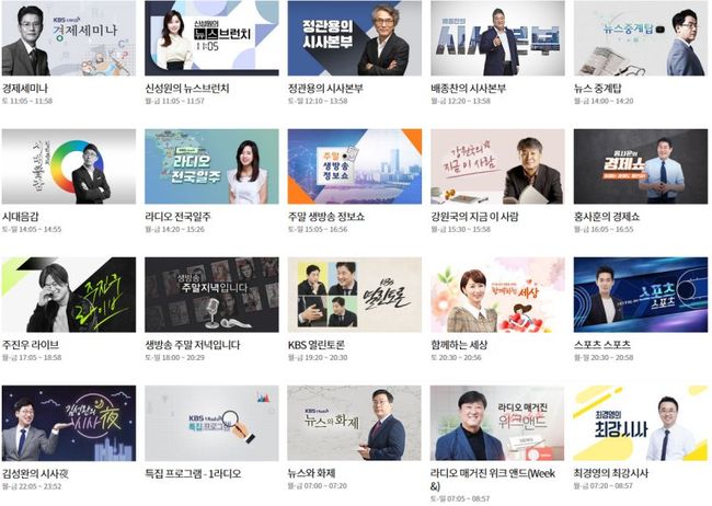 `2018~2023 KBS1 라디오 진행자 현황`을 보면 그 면면이 화려하다.