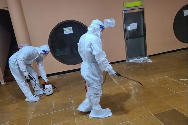 인천광역시는 11월6일부터 12월8일(5주간)까지 찜질시설 목욕장 및 숙박업소 757개소를 대상으로 시 · 구 합동 위생점검을 실시한다고 밝혔다. 사진은 소독하는 모습.