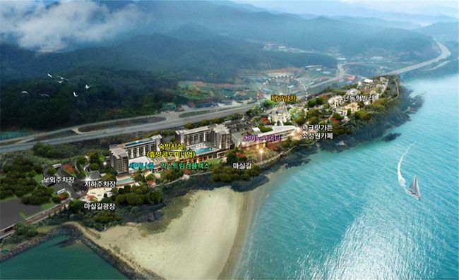 관광숙박시설로는 휴양콘도미니엄 150실, 단독형빌라 15실과 어린이를 대상으로 한 공연시설과 대관람차가 함께 입지하여 가족 단위로 즐길 수 있는 휴양시설이 조성될 전망이다.