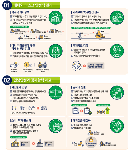기재부 업무보고 큰 줄기는 ▲대내외 리스크 안정적 관리 ▲민생안정과 경제활력 제고 ▲재정운용의 효율화 ▲구조개혁 및 성장기반 강화 등 네가지로 나뉜다.