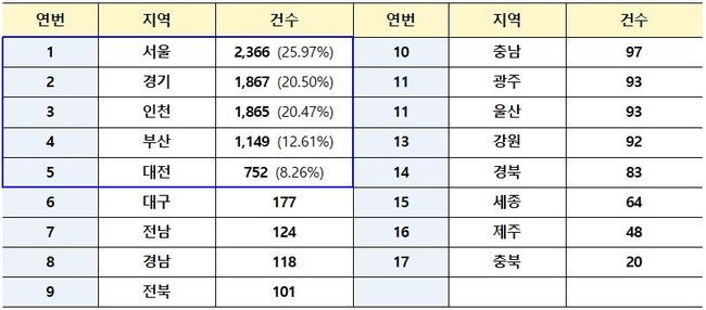 전세사기피해자등 결정현황 (주로 수도권 집중(66.94%), 그외 부산(12.61%)・대전(8.26%)도 다수)