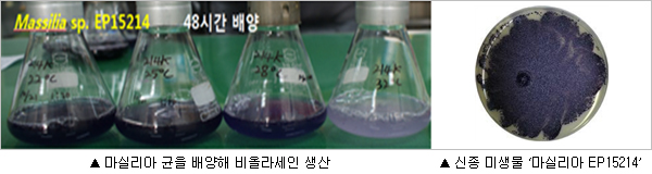 이번에 발견한 '마실리아 EP15214'는 영양 상태가 부족한 토양에서 생장하는 균주로, 기존에 보고된 비올라세인 생산 균주들과 계통적으로 분리된 신종이다.