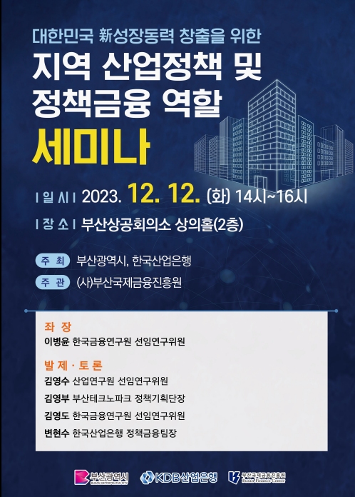 한국산업은행과 `지역 산업정책 및 정책금융 역할` 세미나 개최 포스터
