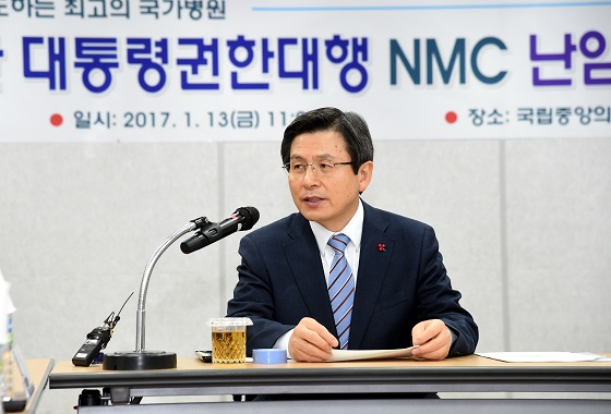 황교안 대통령 권한대행 국무총리가 13일 서울시 중구 국립중앙의료원 난임센터를 방문. 인사말을 하고 있다. |