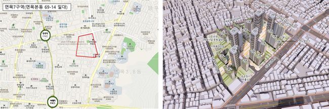 면목7구역 위치도 및 조감도