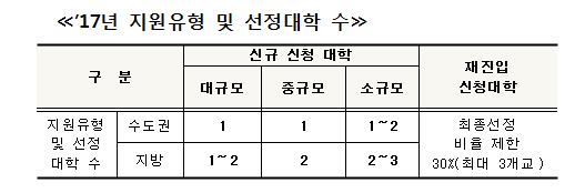 선정된 학교는 대학의 자발적인 교육과정 혁신 노력, 교육지원 시스템 관리체계 구축, 교수·학습체계 개선 등을 지원받을 수 있다.