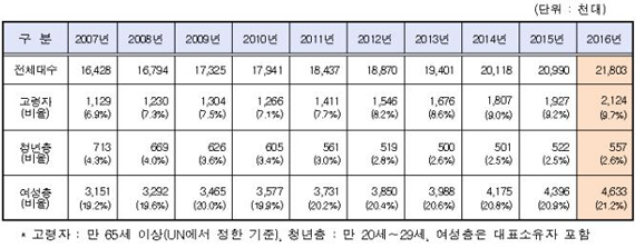 고령자 청년층 여성층 자동차 등록현황<제공=국토부> |