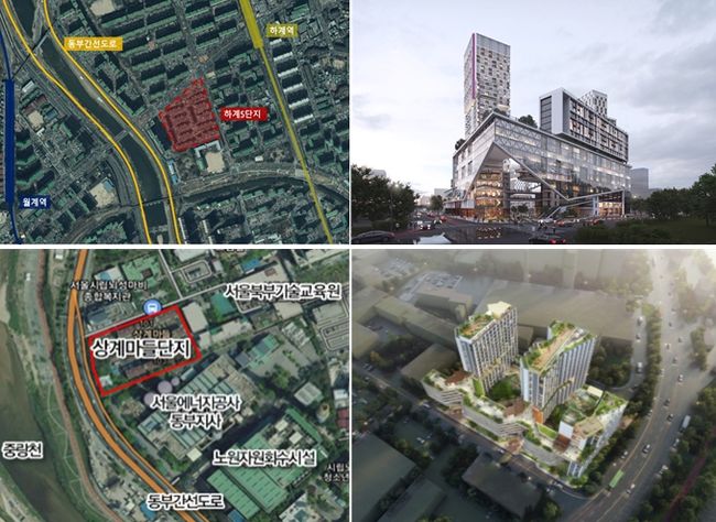 하계5 단지 위치도 및 조감도(사진 위), 상계마들 단지 위치도 및 조감도(사진 아래)