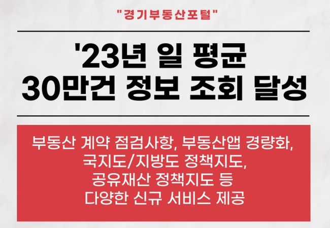 지난해 경기부동산포털의 조회수는 1억 300만여 건으로 2022년 1억 1천500만 건에 이어 두 번째로 1억 건을 넘었다.