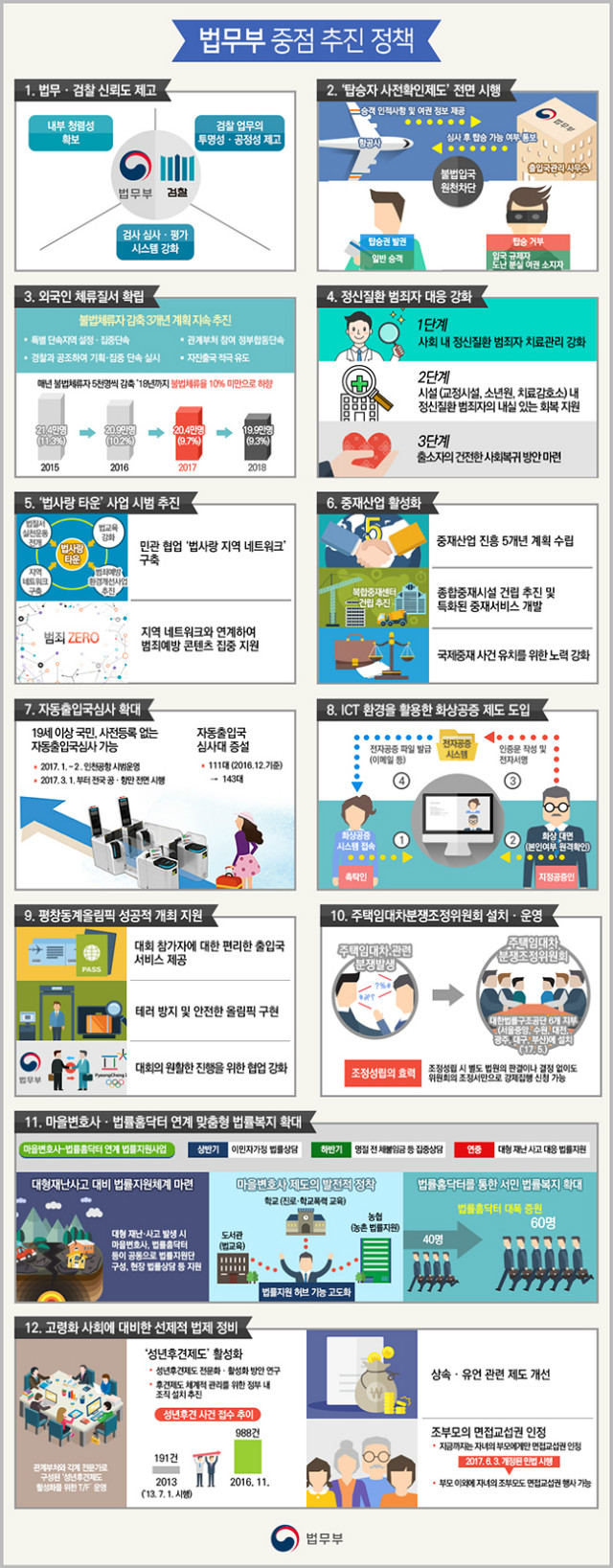 [일간환경연합 한선미 기자]다음은 2017년 법무부가 중점 추진하는 정책에 대하여 알아 볼가요. 인포그래픽으로 뉴스로 한눈에 보겠습니다.