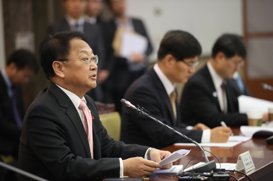 유일호 부총리 겸 기획재정부 장관이 19일 정부서울청사에서 열린 물가관계장관회의 겸 경제현안점검회의에 참석해 발언하고 있다. <사진 연합뉴스 제공> |