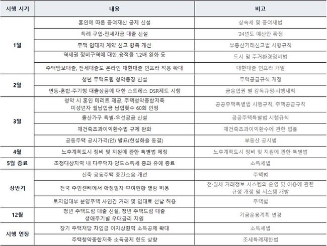 2024년 달라지는 부동산 주요 제도(각 제도의 법규 및 시행시기를 조사해 ㈜직방이 재가공)