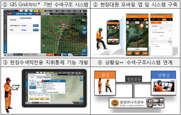 배덕곤 안전처 소방장비항공과장은 앞으로 조난자 수색에 참여하는 의용소방대원들도 ‘119수색구조시스템’ 앱을 스마트폰에 탑재할 수 있도록 시스템을 고도화해 나갈 계획이다 고 밝혔다.