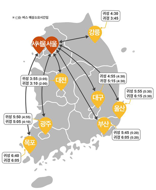 • 서울→부산 5시간 45분, 서울→광주 5시간 50분 예상