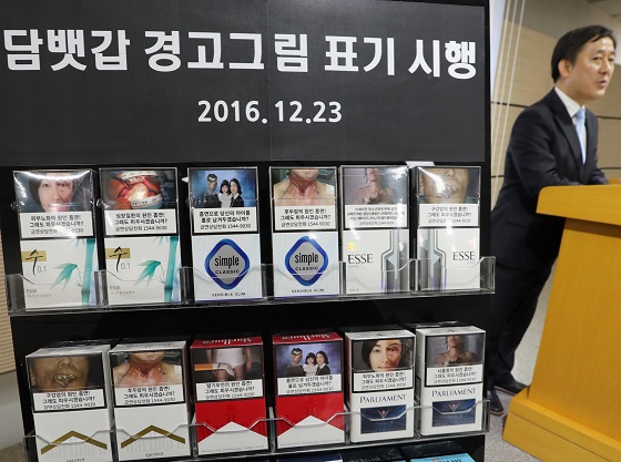 국민건강증진법 개정에 따라 지난해 12월 23일부터 담배공장에서 반출되는 모든 담배제품의 담뱃갑 앞·뒷면(면적의 30% 경고그림, 경고문구 20%)에 경고그림 표기가 의무화됐다.