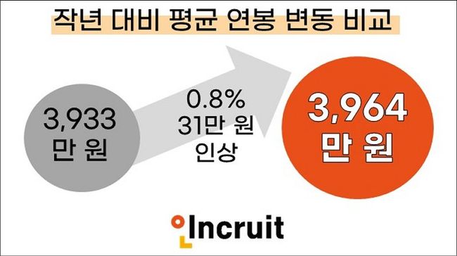작년 대비 평균 연봉 변동 비교 (그래픽=인크루트)
