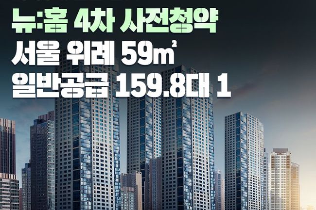 뉴:홈 4차 사전청약 19.6대 1 마감...서울 위례 65.1대 1, 고양창릉 40.1대 1 기록