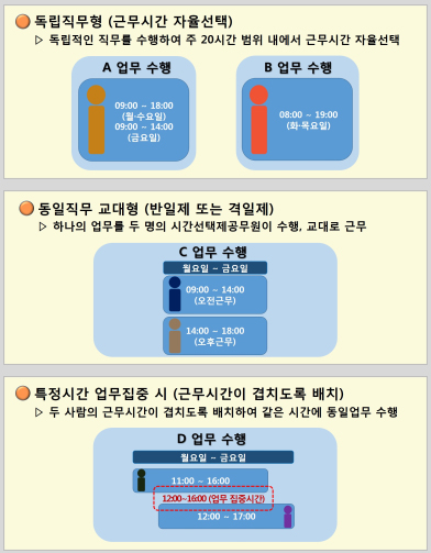 최재용 인사처 인사혁신국장은 “시간선택제는 일·가정 양립과 저출산 극복, 양질의 일자리 창출 등 우리 사회가 당면한 다양한 현안사항을 해결할 핵심 정책과제”라며 “시간선택제 활성화를 통한 일자리 창출을 위해 공공부문이 솔선수범 하겠다”고 밝혔다.