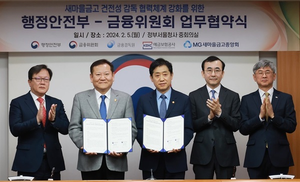 행정안전부와 금융위원회는 5일 정부서울청사에서 ‘새마을금고 건전성 감독 협력체계 강화를 위한 업무협약’을 체결했다.