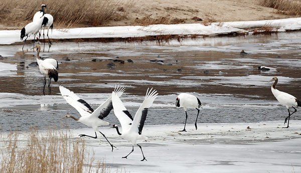 ▲ 강원도 철원군 한탄강에서 두루미 무리가 겨울을 보내고 있다. (ⓒ뉴스1) 최근 환경부는 기후변화 등으로 지방하천에 홍수 피해가 갈수록 커짐에 따라 홍수로부터 국민의 안전을 확보하기 위해 주요 지방하천을 국가하천으로 승격을 추진해 왔다.